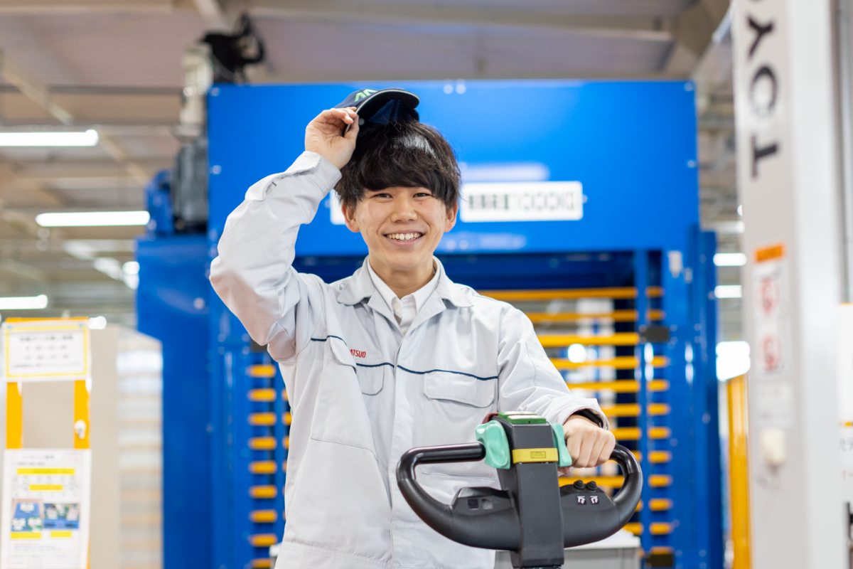 マツオの新入社員は1年目から2年目に替わるタイミングでジョブローテーションが行われます。1年目は金型を作る部署に配属されました。慣れない作業も多く、正直辛いと思うこともありました。2年目以降に今所属する物流部に配属されました。